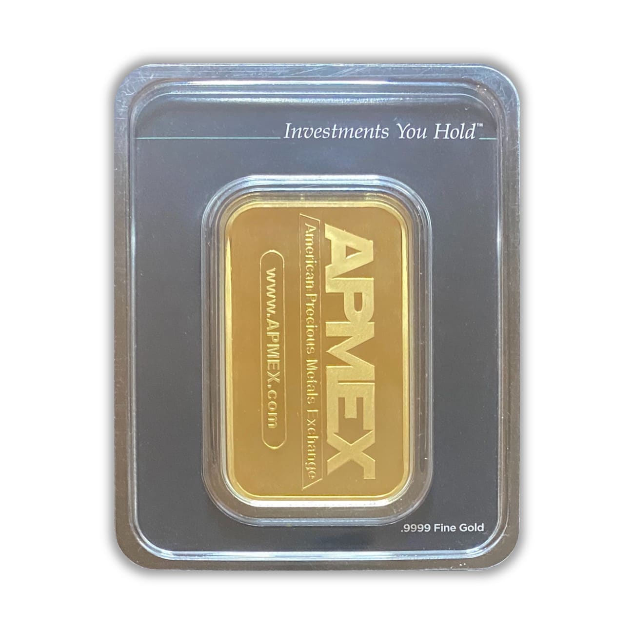 APMEX is one of the largest sellers of bullion products in the USA. This is their in-house designed bar, which contains 1 oz of .9999 fine Gold and comes in sealed tamper-evident packaging to ensure it arrives as good as the day it was minted.