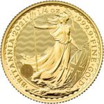 The Britannia 2021 1/4 oz Gold Bullion Coin is a stunning investment piece, made of 99.99% pure gold and weighing 1/4 oz. On the obverse, it features a depiction of Her Majesty Queen Elizabeth II, surrounded by intricate detailing and the inscription “Elizabeth II, DG Reg F D.” The reverse showcases the iconic Britannia, standing firm with a trident in hand, symbolizing strength and resilience. With its elegant design and rich gold content, this coin is a perfect blend of beauty and value for collectors and investors alike.