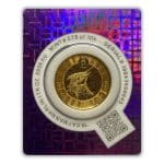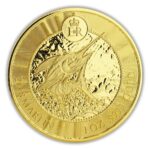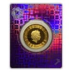 This 1 oz gold coin is produced by Scottsdale Mint. It features a marlin leaping from the ocean, its bill extending to the outer edge of the coin. In the background are ripples that surround the marlin, which adds to the beauty and intricacy of the design.