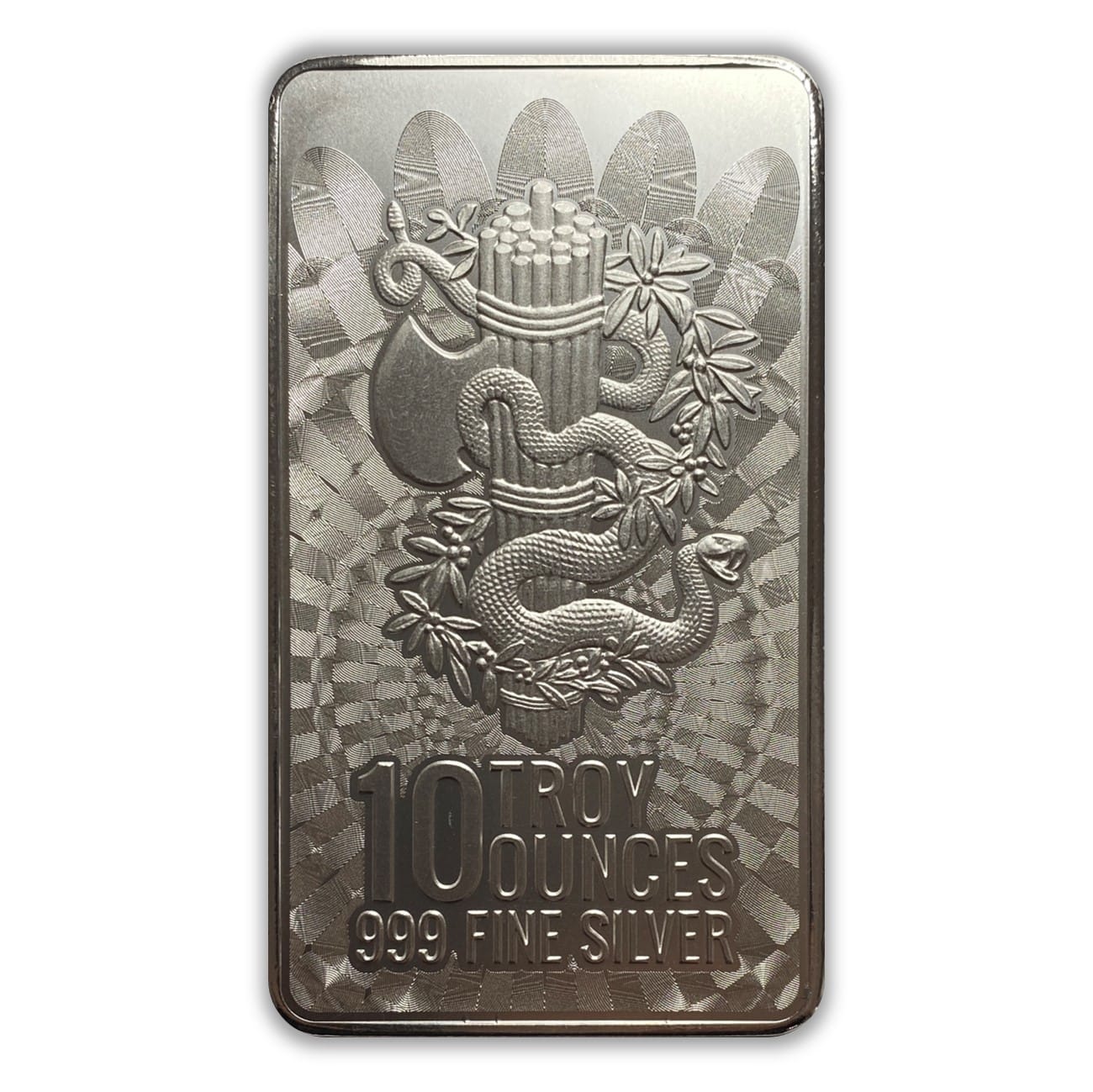 The 10 oz Silver Liberty & Unity Bar is minted by Elemetal. It contains 10 troy ounces of .999 fine silver and features the beautiful high-relief designs and micro-engraved patterns of Lady Liberty on the obverse and a snake on the reverse.