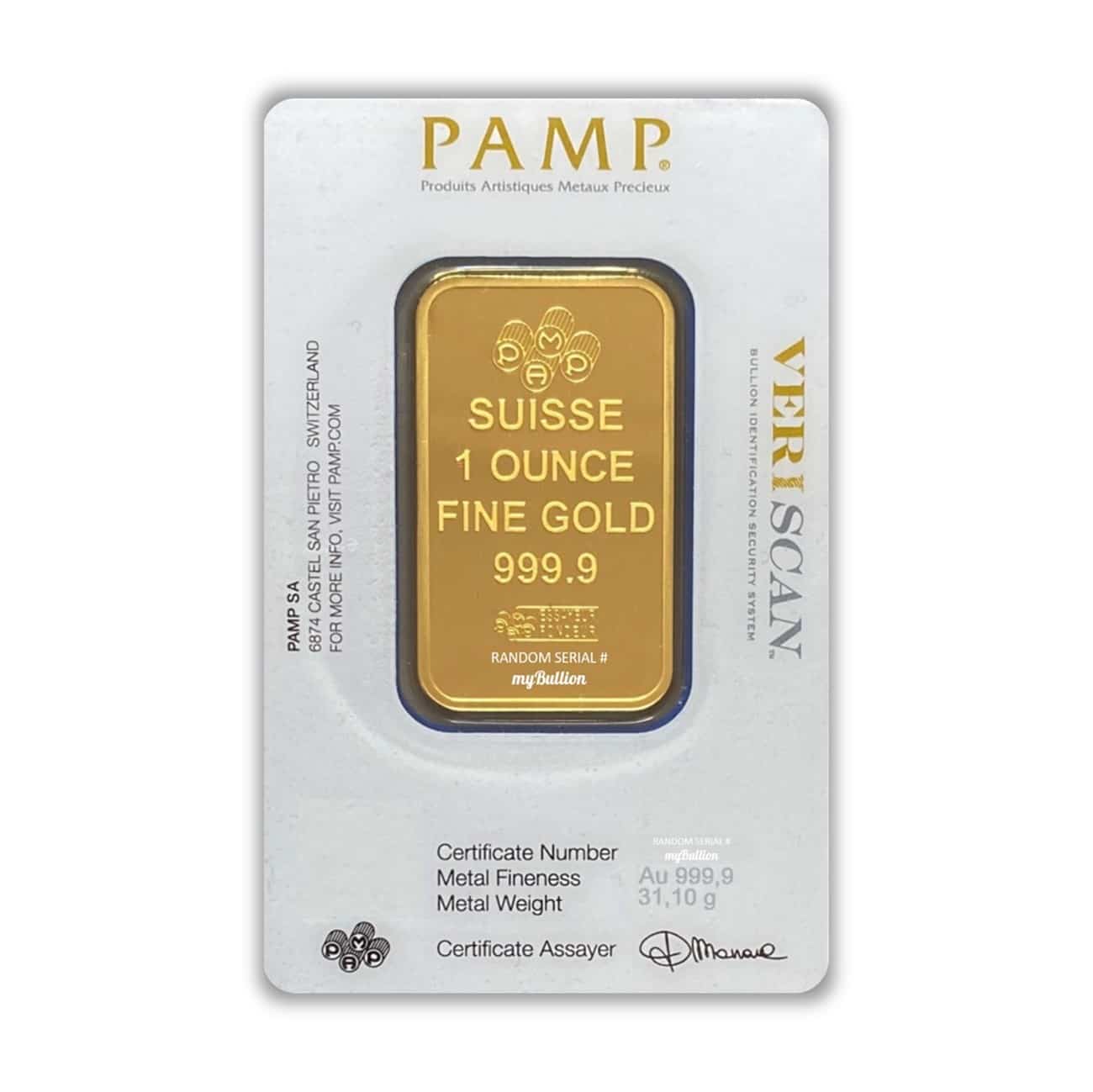PAMP are well known for using the highest Swiss engineering skills and here is no exception with their most popular 1 oz Gold bar. It features an image of Lady Fortuna on the front, with weight, fineness and serial number located on the back. Each bar is individually registered and sealed in a protective holder, and incorporates Veriscan® technology.