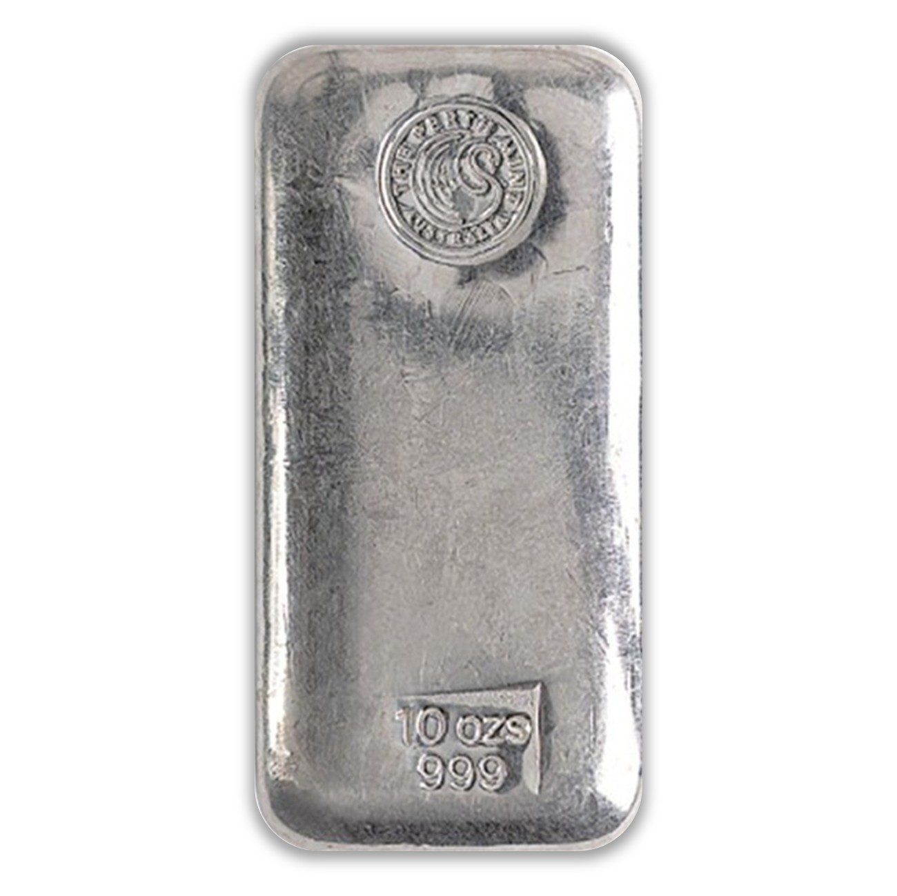 10oz silver bullion bars refined to 99.9% purity by the esteemed Perth Mint. Larger format bars make for an easy way to acquire greater amounts of .999 fine Silver with just one purchase.