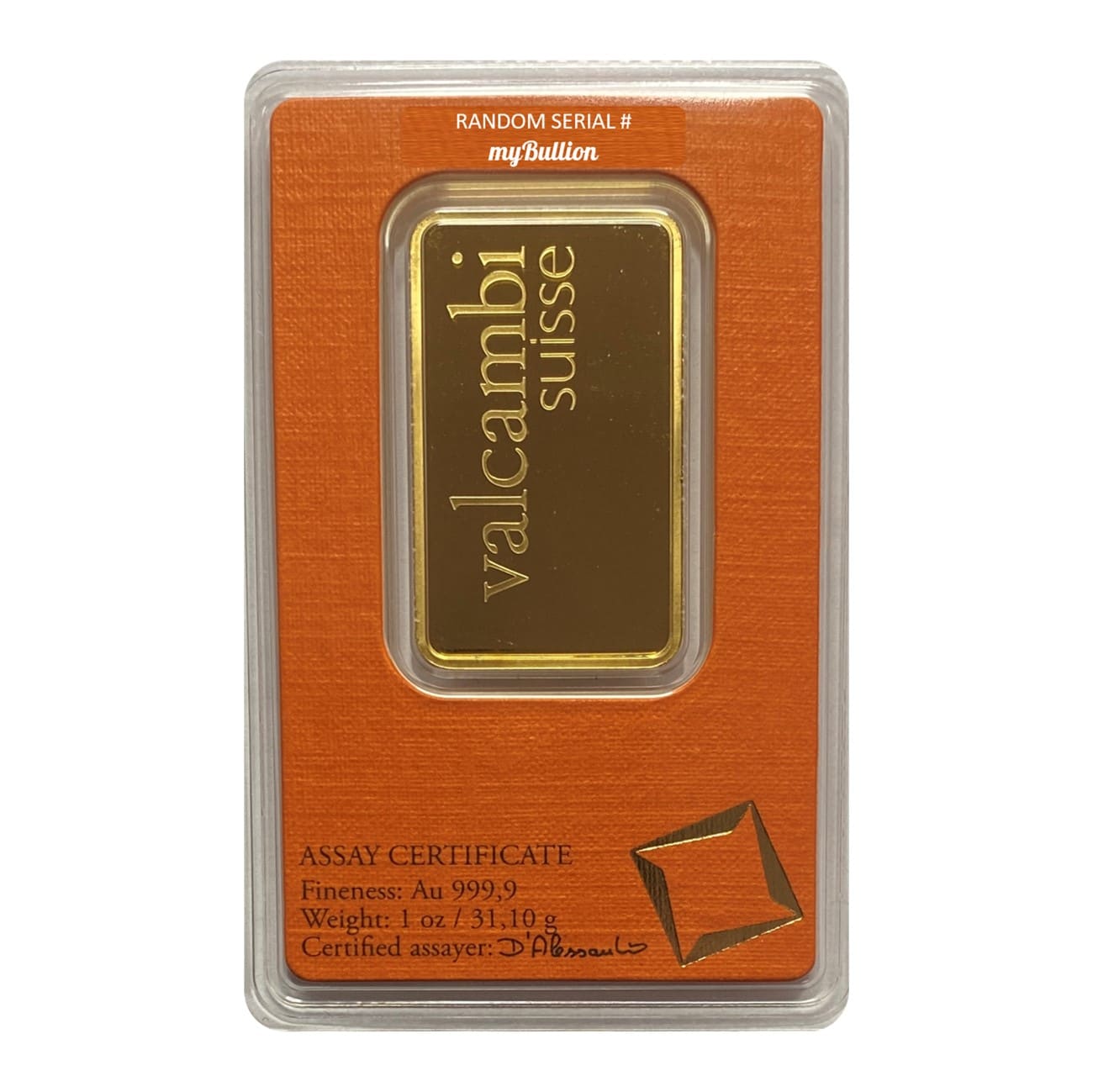 Valcambi is known for its state-of-the-art refining processes and simple designs. This 1 oz bar includes minimal imagery on both sides, with a rounded design at the corners and a raised edge around the outside. Each bar is stamped with a unique serial number and comes in a protective certicard.